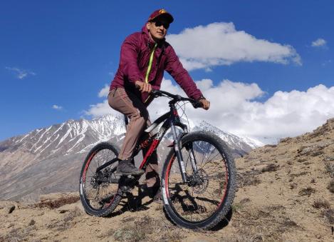 David Kumar is a professional mountain biker participating in marathon and stage races all over the globe. He has been one of the most successful mountain biker of India over last 5 years. He and his childhood friend Abhishek go on regular excursions in the Himalayas, including the first ascent and descent of Kinner Kailash (6032 m) by mountain bike and the winter bike expedition to the Somang Monastery near Nako.